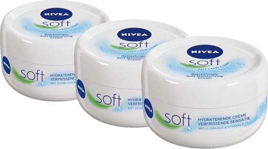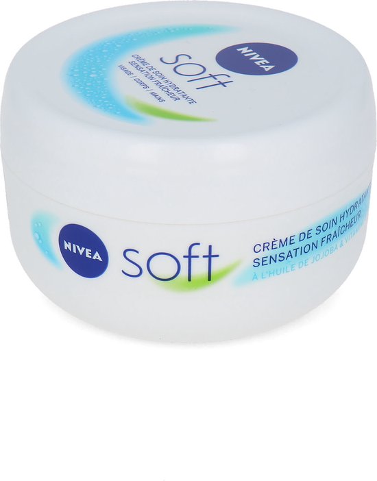 Nivea Soft is een verfrissende, intens hydraterende crème voor dagelijks gebruik. De lichte formule met vitamine E en jojoba-olie trekt snel in en maakt de huid zacht en soepel – zonder een vet laagje achter te laten.