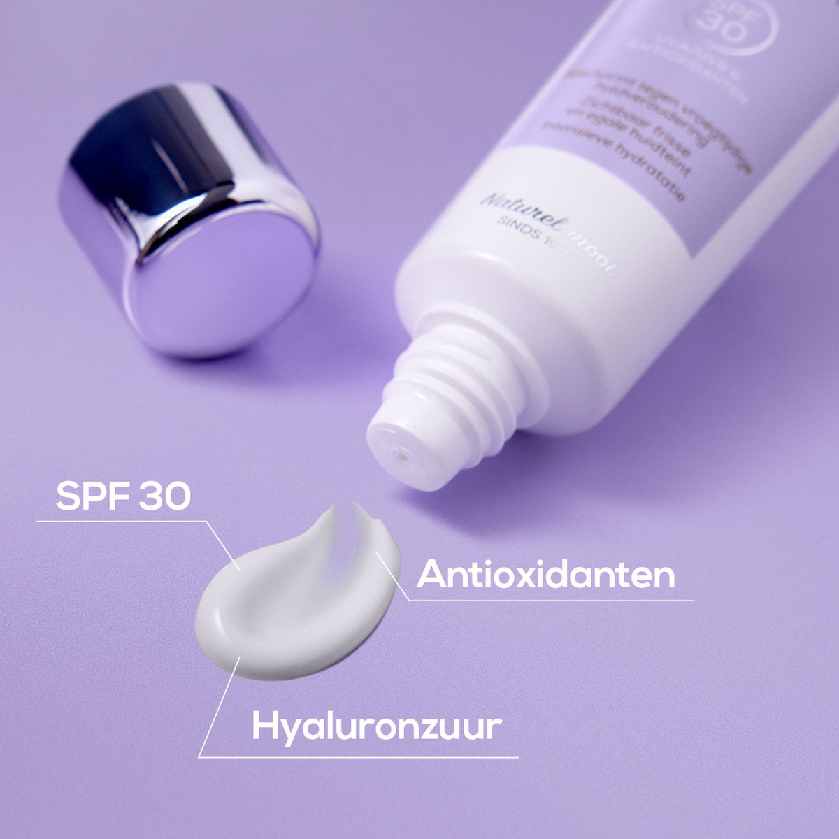 This day cream contains SPF 30, powerful antioxidants and hyaluronic acid .