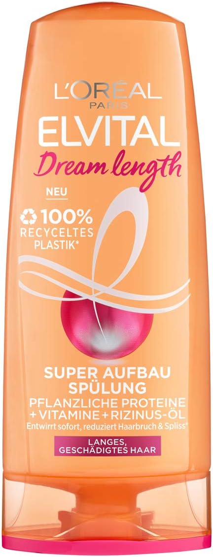 Lichaamsverzorging voor lang, beschadigd haar. Wilt u dat uw lange haar er geweldig uitziet en nog langer wordt? Lang haar is bijzonder gevoelig voor breuk in lengte en gespleten punten. De punten moeten keer op keer geknipt worden en het haar is weer een paar centimeter korter. De haarverzorgingslijn Elvital Dream Length van L'Oréal Paris is de perfect op elkaar afgestemde verzorgingscocktail voor lang haar. De formule, speciaal ontwikkeld voor lang haar, herstelt haarschade tot een jaar. Het versterkt het, voorkomt verdere schade en zorgt voor vocht tot aan de punten. Bespaar jezelf het bezoek aan de kapper - en bespaar je laatste 3 centimeter.