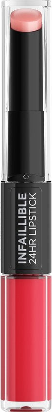 LOral Paris Infallible LipstickThis long-lasting 2-in-1 lipstick is quick and easy to apply in 2 steps. The effective and lip-friendly Infallible formula stays in place for up to 16 hours and does not transfer. The oil in the balm provides a protective layer and prevents dry lips.