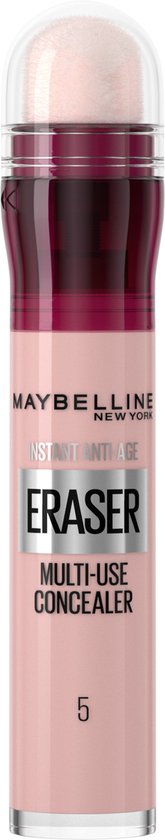De Maybelline Instant Anti Age Eraser (voorheen Instant Age Rewind concealer) is de Maybelline concealer waar elke beautylover bij zweert. Met de zeer dekkende concealer is het gemakkelijk om donkere kringen en wallen zichtbaar weg te werken. Door de unieke formule trekt de liquid concealer niet in de lijnen van de huid, voor een egaal en glad resultaat. De formule bevat Goji bes extract, wat de huid rondom de ogen hydrateert en daarmee fijne lijntjes tegengaat. Ook bevat het Haloxyl, wat donkere kringen onder de ogen neutraliseert. Jouw vertrouwende Instant Age Rewind concealer, verbeterd en nog steeds ultra gemakkelijk. Aan te brengen in een New York minute.