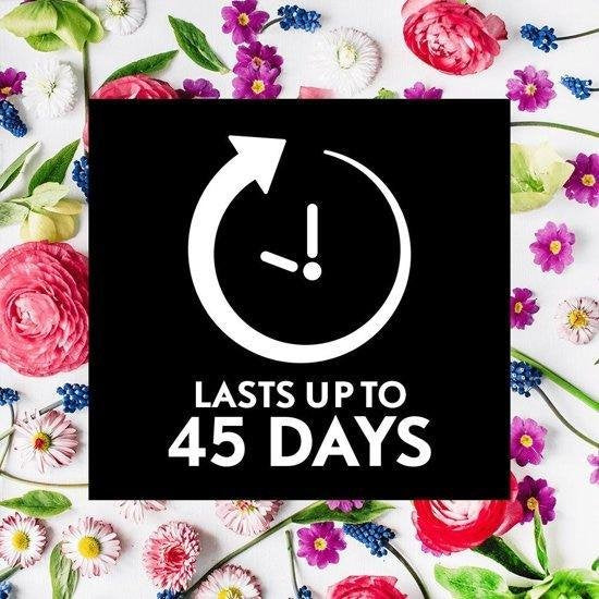 - Een navulling is goed voor 45 dagen parfum op de minimale instelling modus van het apparaat.