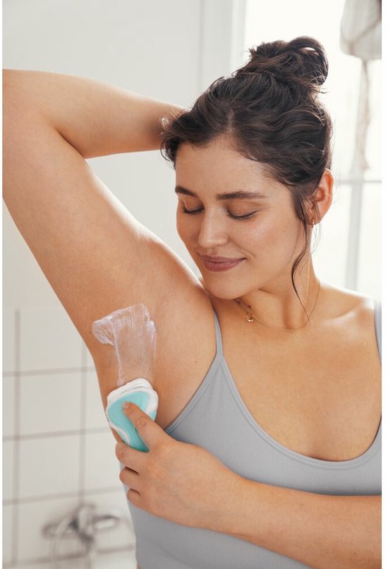 - The moving shaving head ensures easy handling and also adapts to hard-to-reach areas of the body.
