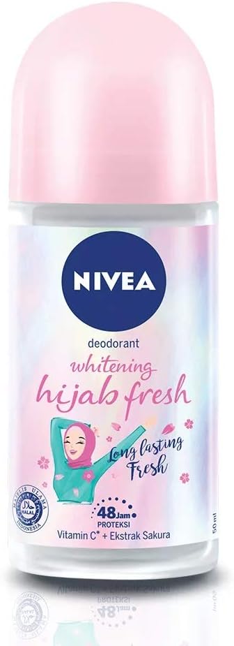 Le déodorant roll-on blanchissant Hijab Fresh de Nivea Women (50 ml) offre jusqu'à 48 heures de protection efficace contre la transpiration et les odeurs indésirables. Enrichi en vitamine C et au parfum rafraîchissant, il aide à éclaircir et unifier la peau des aisselles. Spécialement conçu pour une fraîcheur longue durée, même sous un hijab. Doux pour la peau et sans alcool.