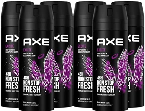 6x Axe Bodyspray Excite sans sels d'aluminium 150 ml