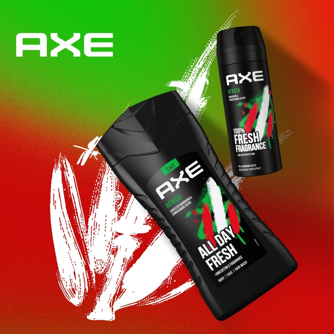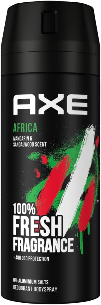 AXE Africa, avec son parfum masculin envoûtant, a été créé pour un monde de nouvelles connexions. Depuis plus de dix ans, il est l'un des sprays corporels les plus populaires, alliant la protection efficace d'AXE contre les odeurs corporelles à une fragrance exotique et envoûtante, développée par les plus grands experts mondiaux en parfumerie. Entièrement sans aluminium, AXE Africa protège si efficacement son porteur qu'il peut toujours compter sur son esthétique séduisante.