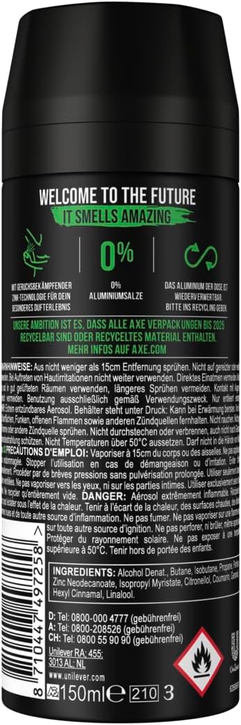 - Déodorant spray AXE Africa sans aluminium, 150 ml
