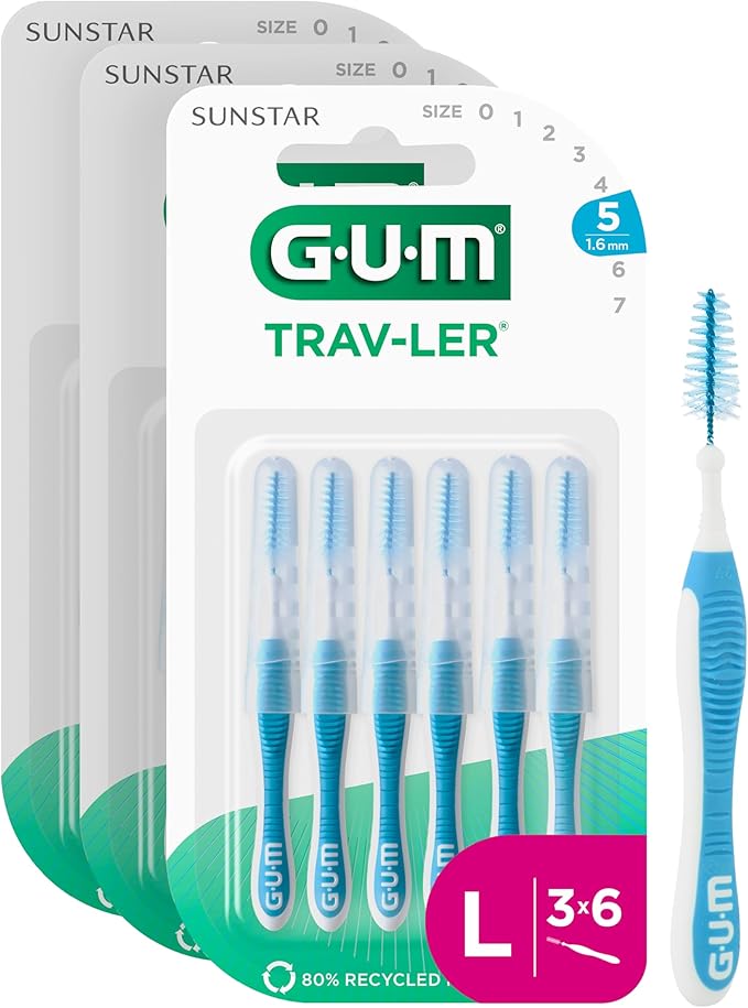 Brossettes interdentaires professionnelles GUM TRAV-LER – Taille ISO 5 (1,6 mm) – 3 x 6 pièces