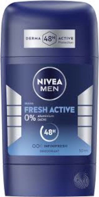 Nivea Men Fresh Active Deostick (50 ml) biedt langdurige frisheid en effectieve bescherming tegen zweet en geur, tot wel 48 uur lang. Met een verfrissende, mannelijke geur en een formule zonder alcohol die zacht is voor de huid. Ideaal voor dagelijks gebruik.
