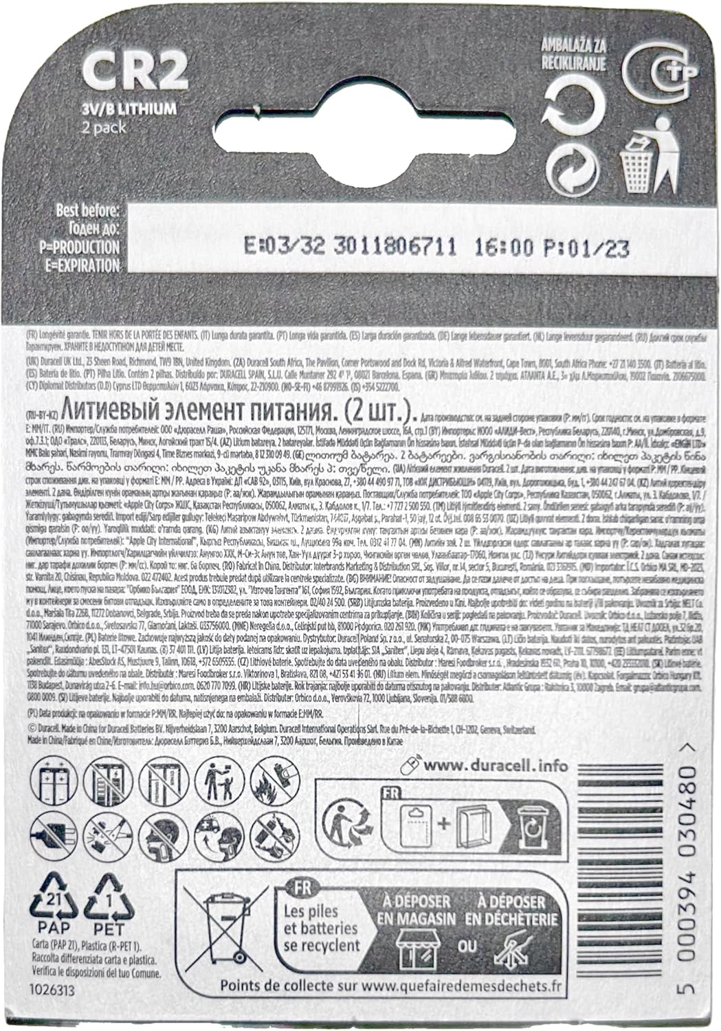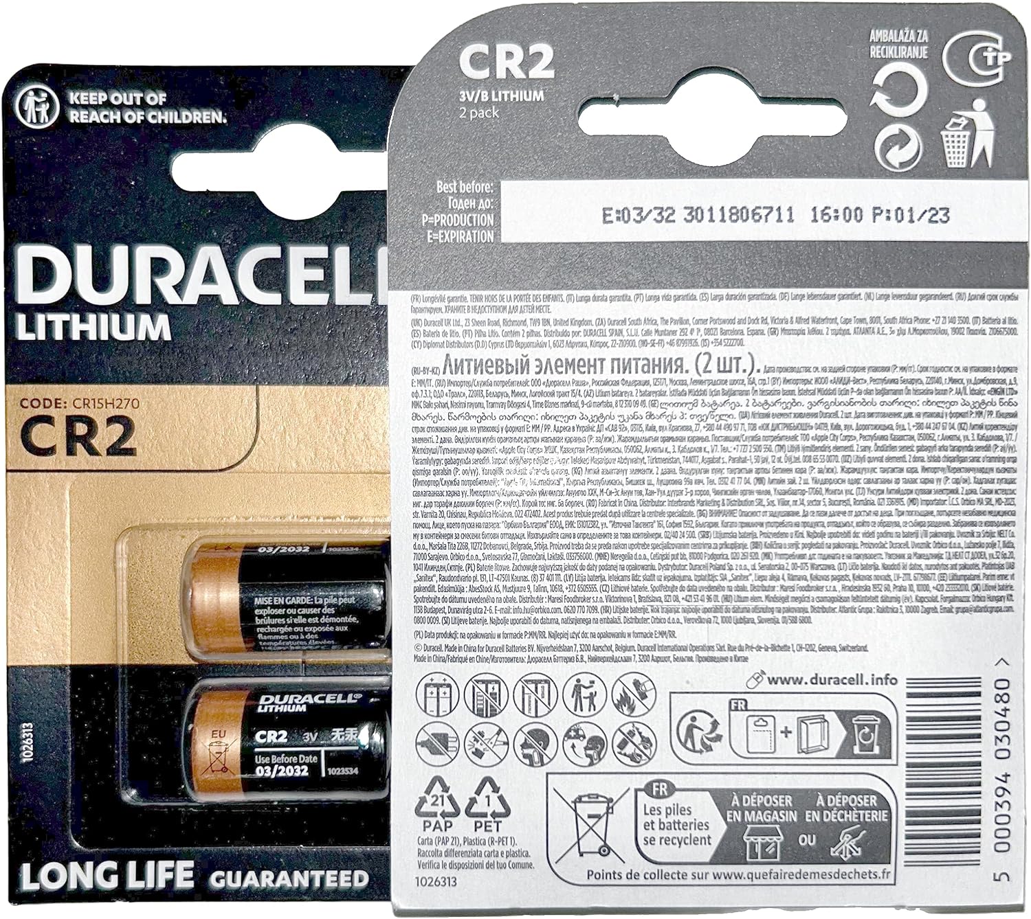 - Duracell Krachtige lithiumbatterijen zijn verkrijgbaar in verschillende maten: CR2, 123, 28L, 1/3N