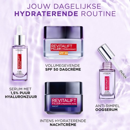 L’Oréal Paris Revitalift Filler Anti-Aging Dagcrème - met Hyaluronzuur - en SPF 50 - 50ml
