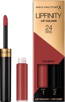 Met de Max Factor Lipfinity Lip Colour Lippenstift, de gloednieuwe versie van ons iconisch lippenproduct, kan jij jouw lippen langdurig en in amper twee stapjes verfraaien. Kies uit de talloze must-have kleuren van de Lipfinity Lip Colour Lipstick en geef jij jouw lippen dat prachtig vleugje kleur en glans voor een indrukwekkende liplook die de hele dag lang perfect houdt. Met deze tot wel 24-uur langhoudende, rijkelijk gekleurde liplook maak je een echt stijlstatement. Formule Dit lippenproduct combineert een gekleurde lippenstift met een lippenbalsem met gloss-effect en geeft je lippen een 24-uur langhoudend multidimensionaal effect boordevol kleur en glans. Dankzij het handige, nieuw vormgegeven staafje met schuimrubberen punt kan je de kleur nog nauwkeuriger aanbrengen, voor een feilloze liplook de hele dag lang. Tips van make-upartists Breng Lipfinity Lip Colour aan op de schone en gedroogde lippen. Omlijn eerst je lipcontour en kleur dan je lippen in met behulp van het staafje met schuimrubberen punt. Wacht even tot dit laagje goed gedroogd is alvorens je een toplaagje lippenbalsem met gloss-effect aanbrengt. Gebruik de lippenbalsem om je liplook tussendoor even bij te werken.Een 2-in-1 lipstick en glossy lippenbalsem 24-uur langhoudend kleurresultaat.|Voor rijkelijk gekleurde lippen met een glanzend toplaagje.|De hydraterende lippenbalsem maakt je lippen mooi glad en hult ze in een schitterende glans.|Het iconische lippenproduct voor een indrukwekkende, kleurrijke liplook die de hele dag lang perfect houdt.|Dankzij het staafje met precisiepunt kun je jouw Lip Colour voortaan nog nauwkeuriger aanbrengen.