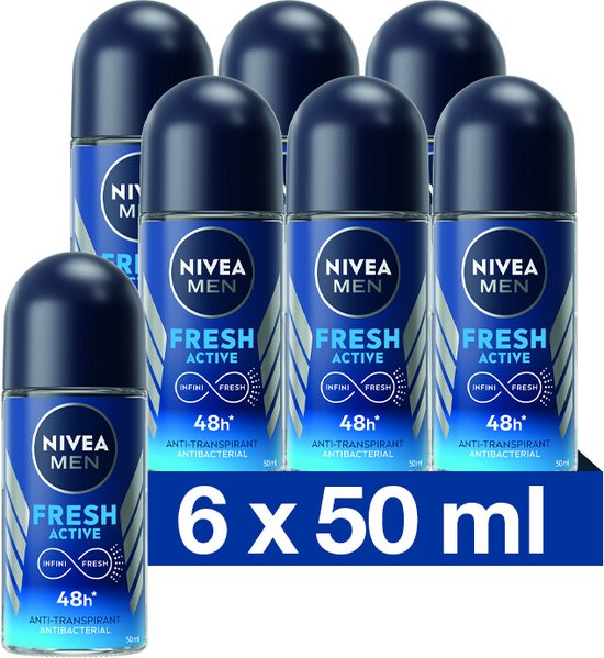 NIVEA MEN Fresh Active Deodorant Roller is verkrijgbaar in een handige voordeelverpakking met zes deodorants.