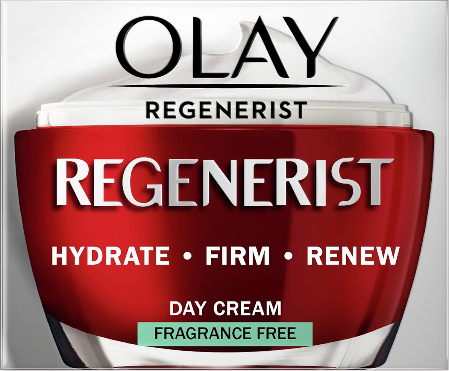 Vernieuw de natuurlijke uitstraling van uw huid met Olay Regenerist Day Face Cream, de meest vochtinbrengende crème van Olay. Olay's geurvrije hydraterende formule, verrijkt met vitamine B3 (niacinamide) en peptiden, dringt tot 10 lagen diep in het huidoppervlak en helpt de celvernieuwing aan het oppervlak te verbeteren. De crème hydrateert de huid diep gedurende 24 uur, waardoor de huid zichtbaar wordt vernieuwd en versterkt. Olay anti-aging en hydraterende gezichtscrème is geschikt voor alle huidtypes, inclusief de normale, droge en vette huid. Dit product bevat: Olay Regenerist - Dagcrème Voor Het gezicht, Geurvrij - 50 ml