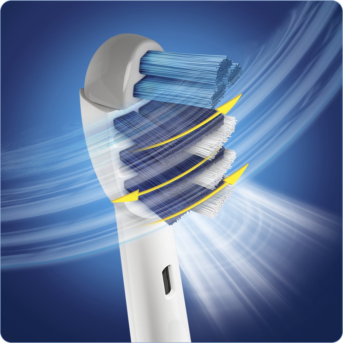 De Oral-B TriZone 600 elektrische tandenborstelkop heeft de vorm van de borstel van een manuele tandenborstel, maar is ontworpen om aanzienlijk beter te reinigen. Je kunt poetsen zoals je gewend bent, maar je verwijdert veel meer tandplak. Laad de elektrische tandenborstel op en activeer de drie speciale reinigingszones. De powertip maakt de achterkant van de tanden schoon, kortere borstelharen reinigen de tandoppervlakken en langere borstelharen reinigen diep tussen de tanden, voor een drievoudige reiniging. Eigenschappen: - 2 poetsstanden: Dagelijkse verzorging, Tandvleesverzorging - 2 minuten timer - Zichtbare poetsdruksensor Snelheid: - Oscillerende reinigingssysteem: 8800 bewegingen per minuut - Tandenborstel frequentie pulsaties: 20000 bewegingen per minuut Opzetborstels: - TriZone met dynamische drievoudige reiniging, met borstelharen indicator, de borstelharen geven aan wanneer de opzetborstel moet worden vervangen - Ook te gebruiken met alle andere opzetborstels van Oral-B zoals: CrossAction, Precision Clean, FlossAction, TriZone, Sensitive, 3D White