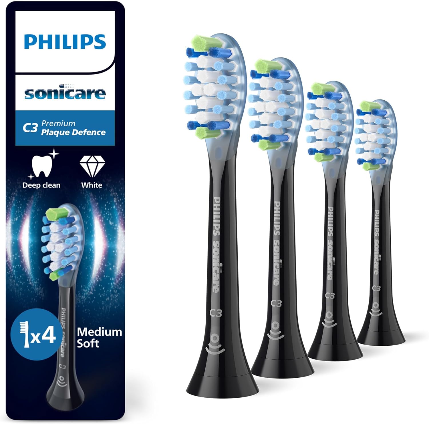 Philips Sonicare Originele standaard sonische C3 Premium Plague Defence -opzetborstels - verpakking van 4 stuks in zwart