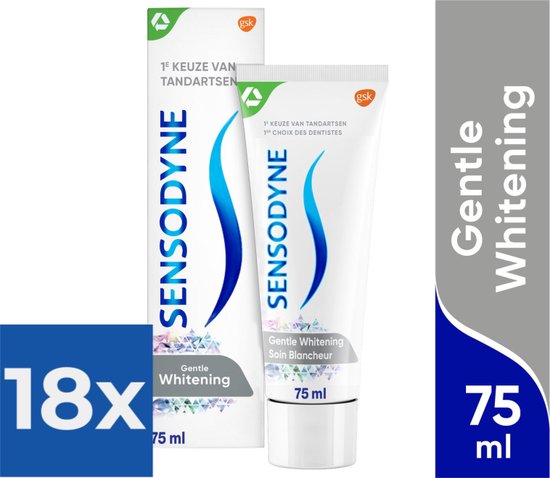 Sensodyne Gentle Whitening dagelijkse tandpasta geeft klinisch bewezen verlichting en dagelijkse bescherming bij gevoelige tanden. 2 x per dag poetsen met Sensodyne Gentle Whitening dagelijkse tandpasta zorgt voor een 24/7 bescherming bij gevoelige tanden en een effectieve reiniging. Het bevat fluoride- dat tandglazuur versterkt en helpt beschermen tegen cariës. Sensodyne Gentle Whitening dagelijkse tandpasta heeft een frisse muntsmaak.