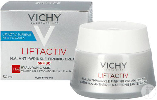 Vichy Liftactiv Supreme H.A. is een anti-rimpel en verstevigende dagcrème met SPF30 die helpt de tekenen van huidveroudering tegen te gaan. De formule is verrijkt met hyaluronzuur en beschermt tegen UV-straling en schadelijke invloeden van buitenaf.